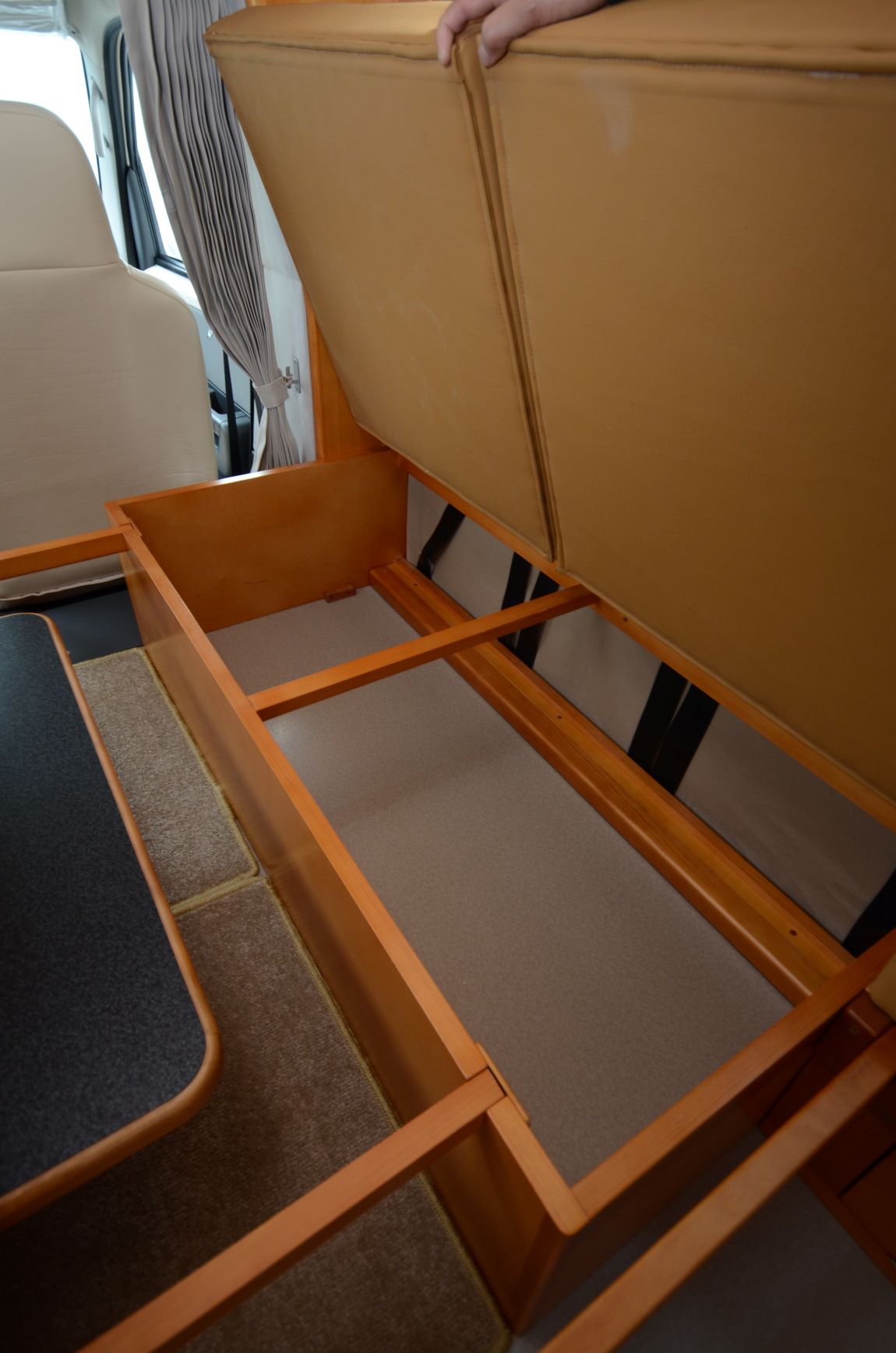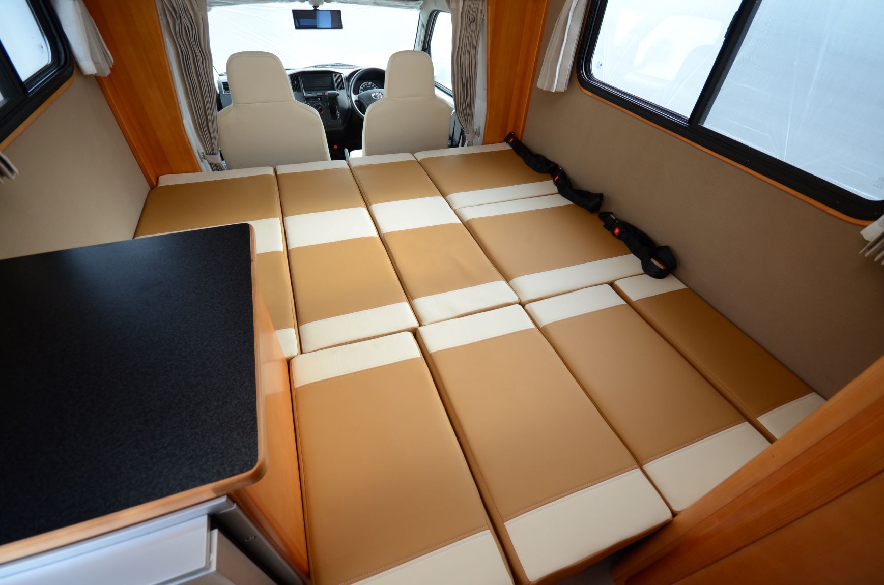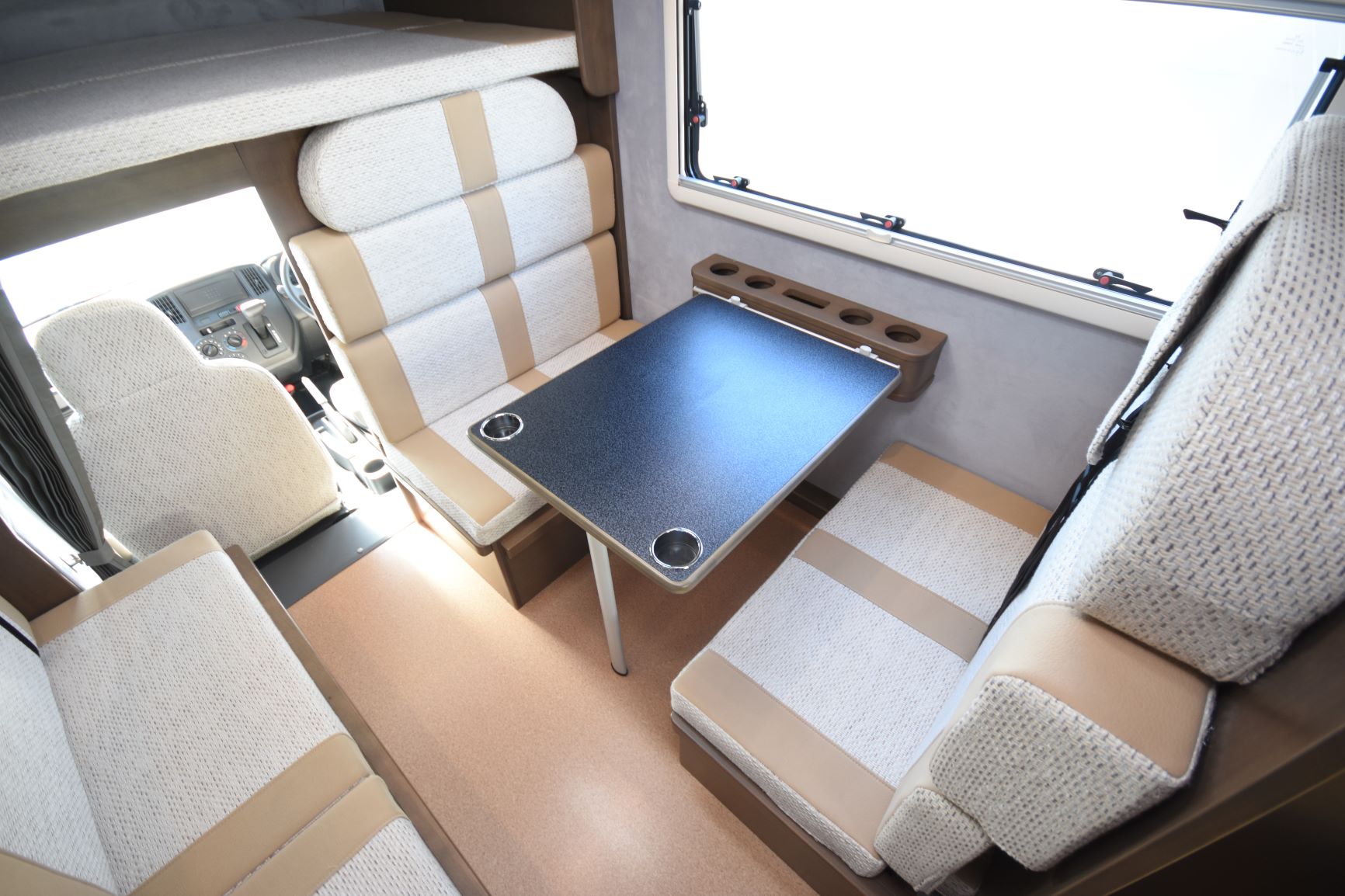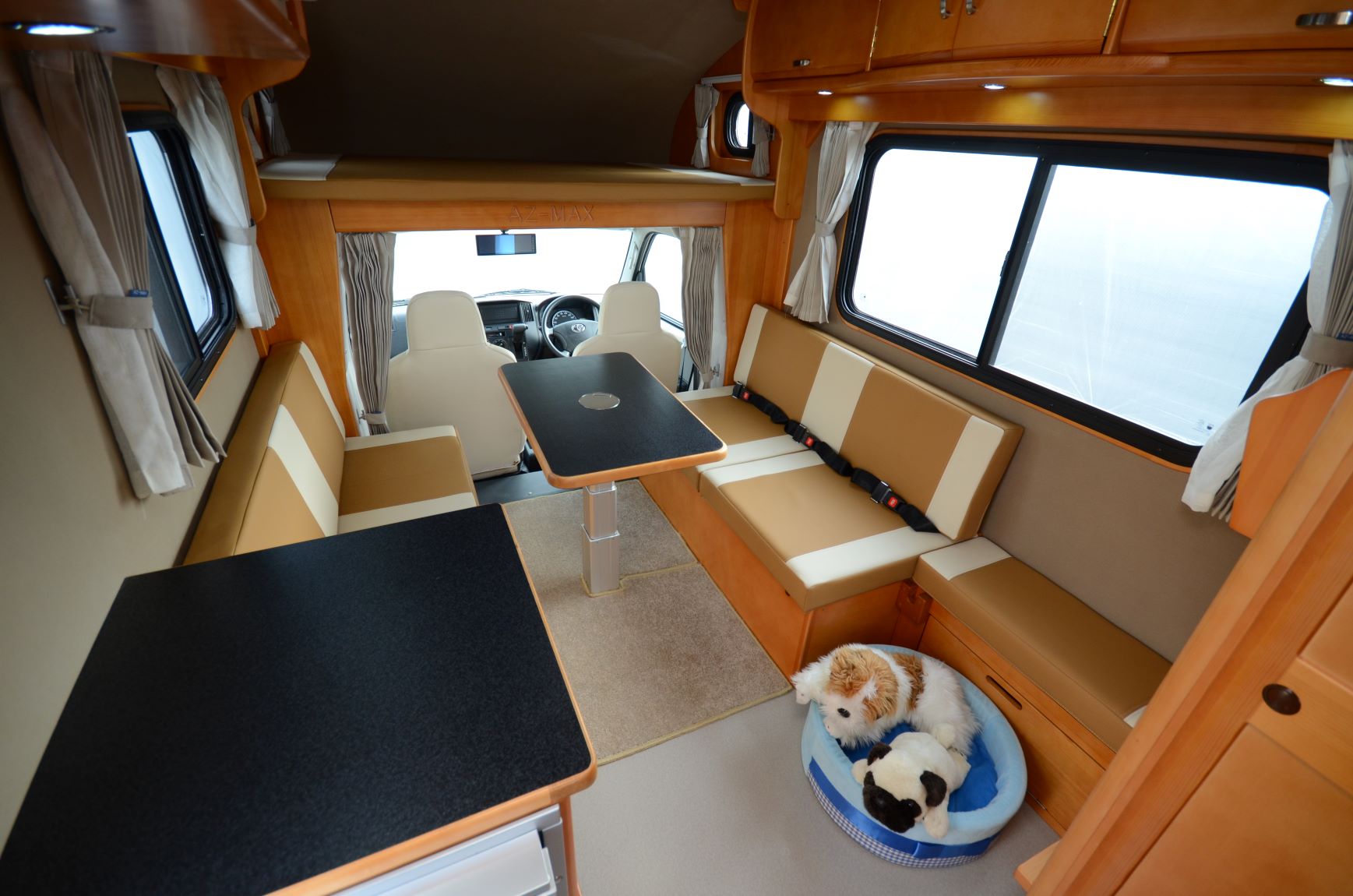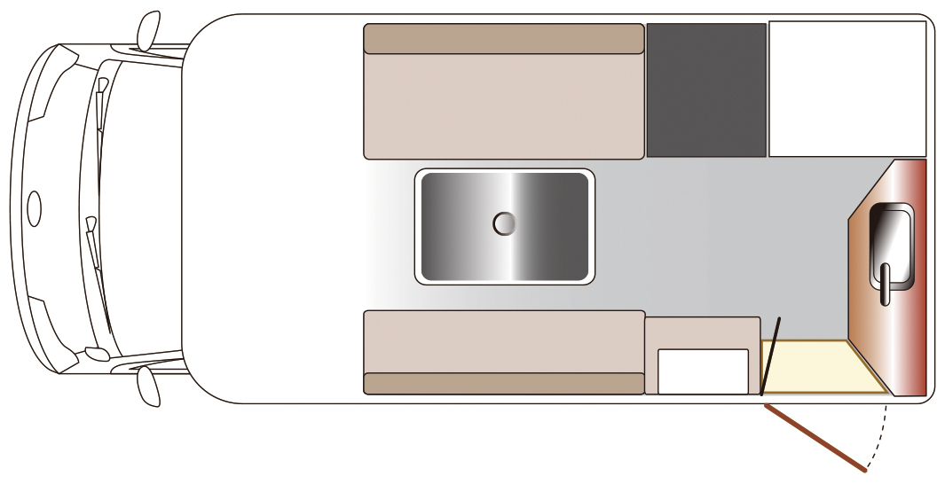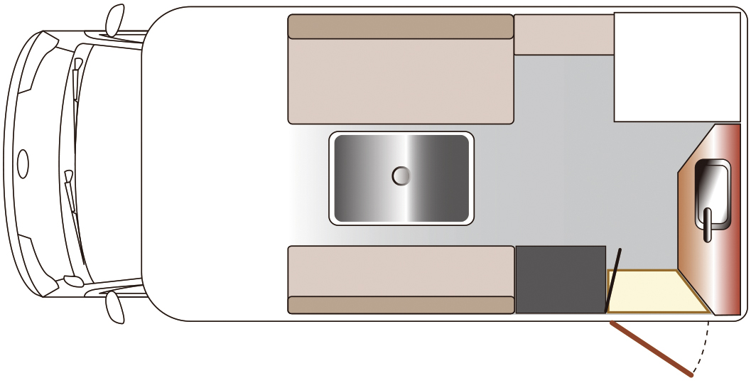 室内レイアウトは6名乗車の「対面ダイネットタイプ」と5名乗車の「横向きソファーシートタイプ」の2種類からお選びいただけます。